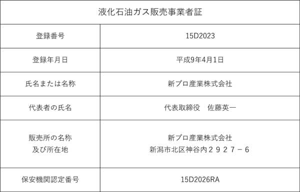 | 2000年05月 | 新潟市北区神谷内2927-6に新社屋新設し本社移転 同敷地内にLPガススタンドを新設し、オートガス事業開始 |
